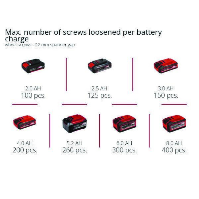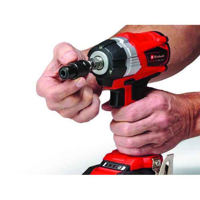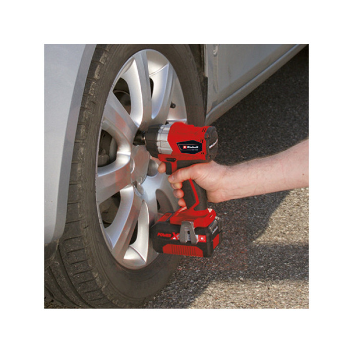 Акумуляторний ударний гайкокрут Einhell TP-CW 18 Li BL - Solo ідеально підходить для догляду та технічного обслуговування автотранспортних засобів сім'ї. Забутьте про енергію і час, який Ви витрачаєте для заміні шин навесні і восени - з цим ударним гайковертом Ви можете послабити і затягнути колісні гайки з легкістю. Цей потужний ударний гайковерт є зручною альтернативою ручного відкручуванню гайок. Інструмент є пристроєм родини Einhell Power X-Change. Акумулятор і зарядний пристрій Power X-Change можуть використовуватися для всіх пристроїв сімейства Power X-Change. Безщітковий двигун забезпечує велику потужність і працює довше, ніж звичайний двигун з вугільними щітками через те, що немає механічного зносу частин всередині двигуна. Високий крутний момент цього ударного гайкокруту, який дорівнює 215 Нм, забезпечує достатню потужність для негайного ослаблення навіть самих щільних, заклинених або іржавих гайок. Але при всій своїй потужності TP-CW 18 Li BL - Solo має легкий од вагу і зручний в роботі. Цей ударний гайкокрут поставляється з міцним зовнішнім квадратним кріпленням на 1/2 дюйма, також є адаптер для гвинтів. Світлодіодне освітлення робочої зони дозволяє вам швидко міняти шини, коли це дійсно має значення : в сутінках, вночі або в погано освітлених гаражах. Поставляється без акумулятора і зарядного пристрою, вони доступні окремо.