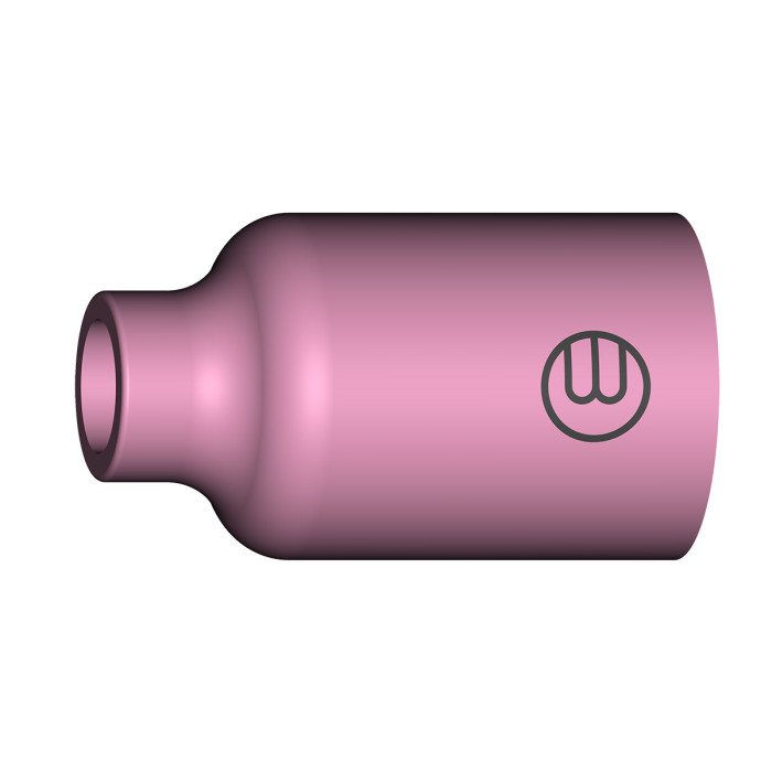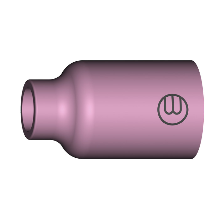 This is a replaceable ceramic nozzle used in argon arc welding (TIG, GTAW) torches. Its main function is to form and direct a protective flow of inert gas (argon, helium) into the welding zone to prevent oxidation and contamination of the weld.