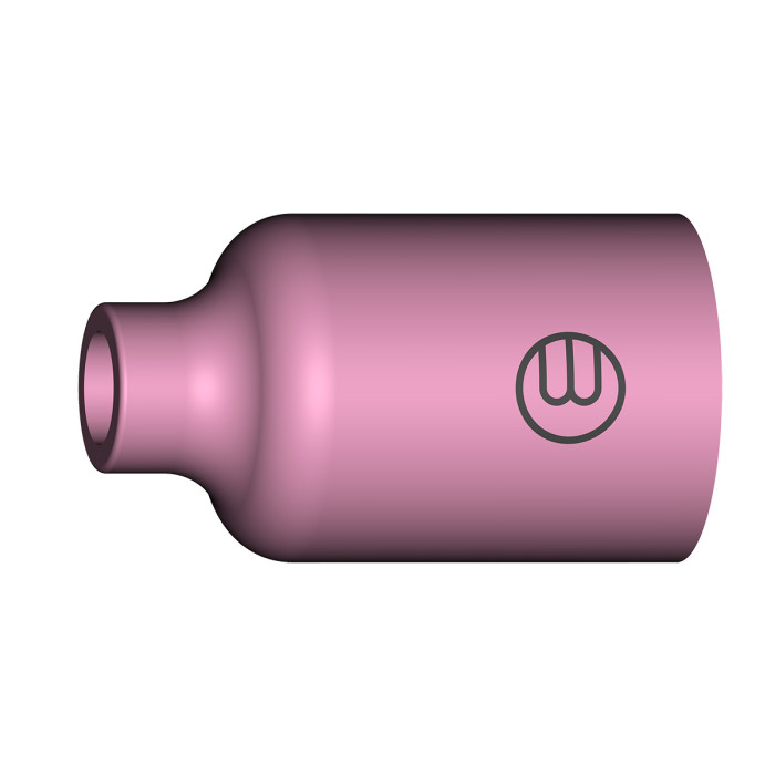 This is a replaceable ceramic nozzle used in argon arc welding (TIG, GTAW) torches. Its main function is to form and direct a protective flow of inert gas (argon, helium) into the welding zone to prevent oxidation and contamination of the weld.