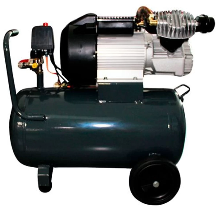 The GTM KAV3050 oil-filled piston compressor has a power of 2.2 kW, a receiver volume of 50 l and a capacity of about 290 l/min at a working pressure of 8 bar, which makes it suitable for medium-sized household and workshop tasks. It is equipped with two cylinders, direct drive, weighs about 45 kg and has dimensions of 71×31×65 cm, with wheels and a handle for easy movement.
