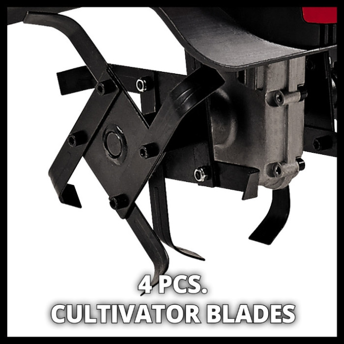 Аварійний вимикач для двох рук Міцні ріжучі леза Ергономічна ручка, що може складатися Кліпса для кабелю проти натяжіння Електричний культиватор Einhell GC-RT 7530 є легким і зручним інструментом для ефективного розпушування ґрунту. Цей інструмент оснащений 2-точковим запобіжним вимикачем, який відключає міцні лопатки культиватора, як тільки ви відпускаєте вимикач. Двигун має потужність 750 Ватт, робоча ширина складає 30 см, а робоча глибина дорівнює 200 мм. Ергономічна довга рукоятка культиватора GC-RT 7530 забезпечує комфортну роботу і може бути складена, що дозволяє зберігати культиватор в мінімальному просторі. Кабельний затискач захищає кабель живлення від пошкоджень і зносу.