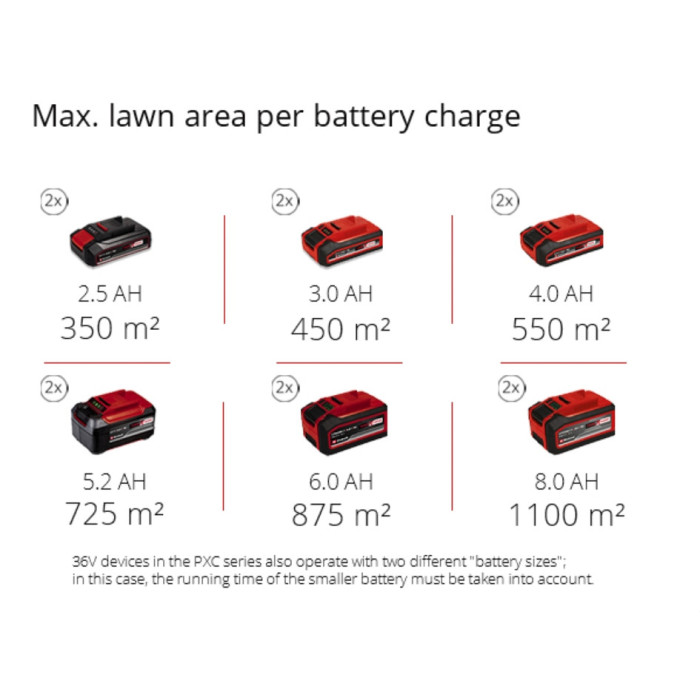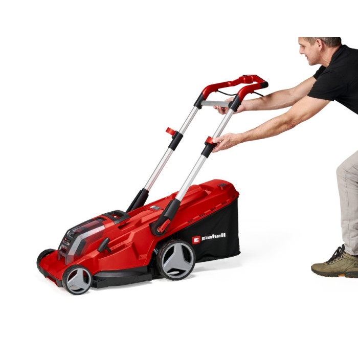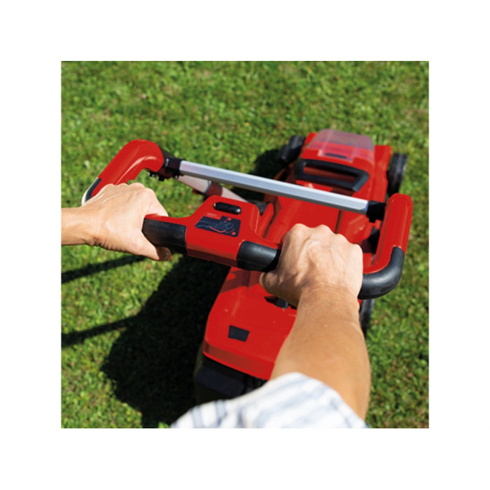 Потужна акумуляторна газонокосарка Einhell RASARRO 36/42 робить роботи по догляду за вашим газоном легкими у кожному куточку вашого саду. Газонокосарка може виконувати функцію мульчування. Вона є пристроєм сімейства Power X-Change. Батарея і зарядний пристрій Power X-Change можуть використовуватись для всіх пристроїв сімейства Power X-Change. Газонокосарка має безщітковий двигун, який має високу потужність і довший термін служби порівняно зі звичайними двигунами. Для простого, індивідуавльного регулювання висоти стрижки газонокосарка має шастиступінчасте осьове регулювання висоти стрижки, висота зрізу може бути попередньо обраною від 25 до 75 мм, а ширина косіння дорівнює 42 см. Газонокосарка дозволяє зрізати газон до самого краю. Ергономічні ручки дозволяють вам не втомлюватись під час роботи, а регулювання телескопічної рукоятки по висоті дозволяє підлаштуватись під кожного користувача. Акумуляторна газонокосарка дуже надійна і її довга і легка рукоятка виготовлена з алюмінію.і може зберігатися в мінімальному просторі. RASARRO рекомендується для газонів до 725 квадратних метрів. Високі та широкі колеса зберігають газон і полегшують роботу в важкодоступній місцевості. 50-літровий травозбірник забезпечує довгу роботу, необхідність очищення травозбірника можна побачити завдяки індикатору рівня. Корпус виготовлений з ударостійкого пластику високої якості. Для зручності перенесення та транспортування є вбудована ручка. В комплект поставки входять 2 штуки Li-ion 5,2 Аг акумулятора серії Power X-Change і зарядний пристрій для двох акумуляторів Power X-Twincharger 3A системи Power X-Change.