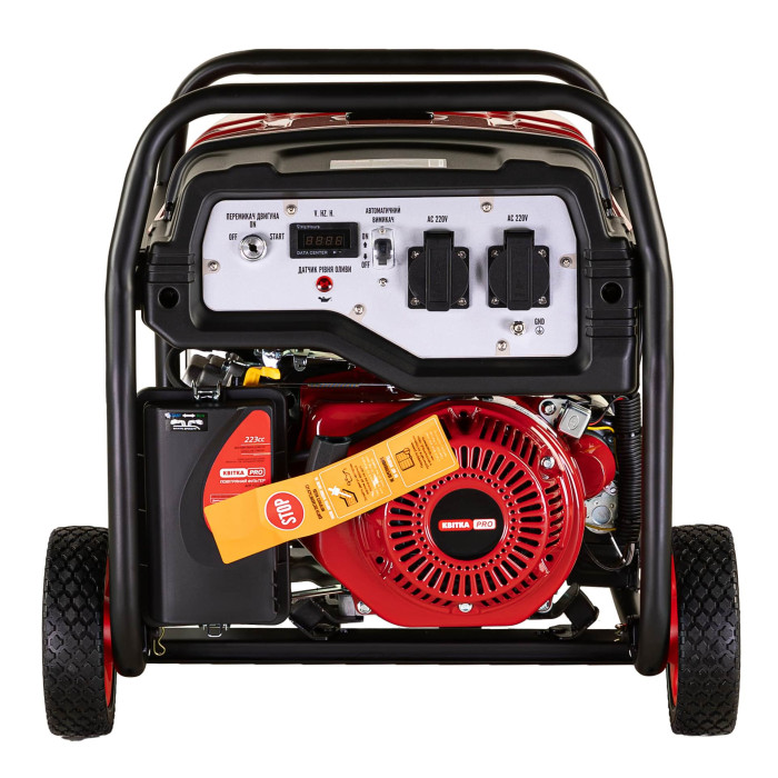 - The KVETKA PRO SC4000-III gasoline generator is equipped with an automatic engine stop system when the oil level is low.