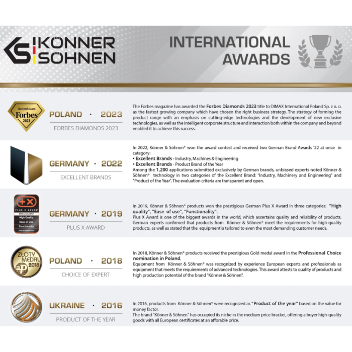 Reliability of the skin parts: branded K&S motor, developed according to European standards, and an alternator with 100% copper winding will ensure durability and stable operation of the generator.
