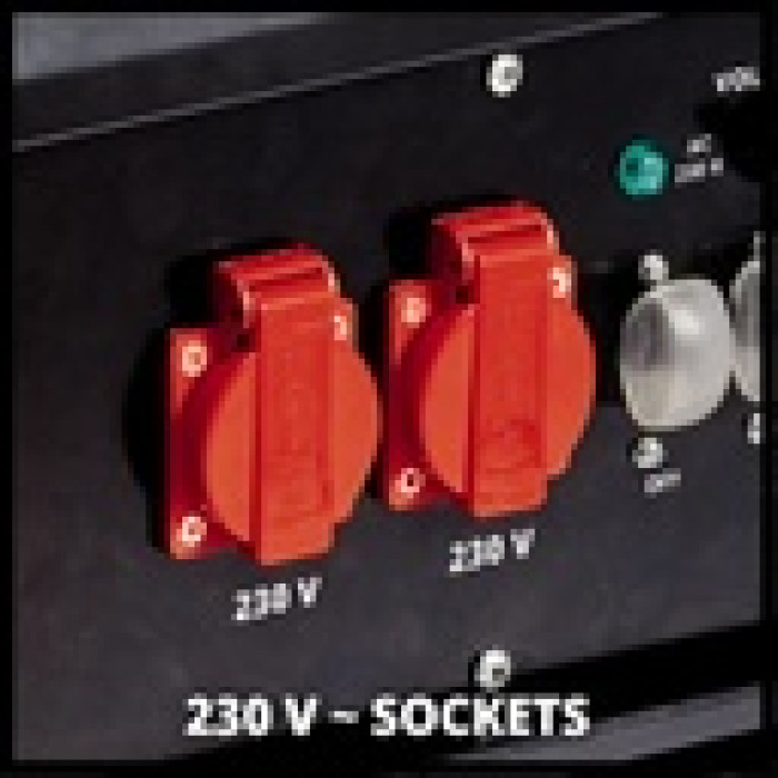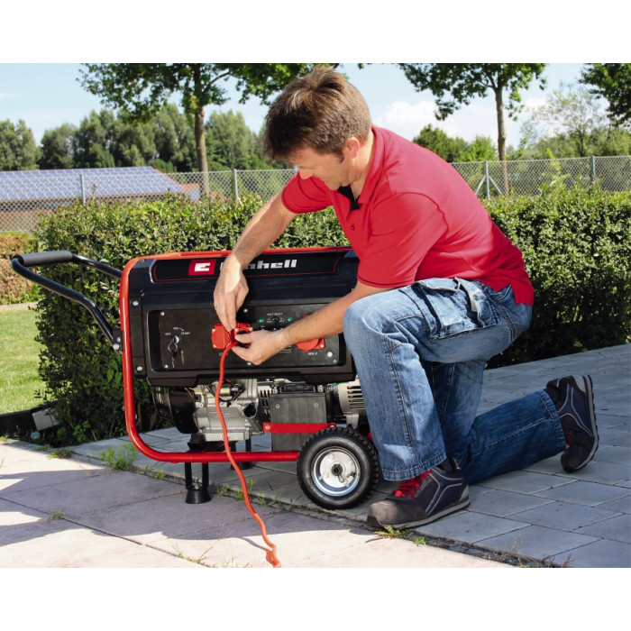 The Einhell TC-PG 55/E5 petrol generator is powered by a powerful and reliable 4-stroke engine and supplies electricity wherever it is needed, regardless of the power source: so with minimal effort it quickly supplies electricity to all areas. , on construction sites, at the campsite, in workshops and garages or even on holiday in detached buildings such as forest, fishing or mountain lodges. In addition, the engine is a low-emission engine thanks to compliance with the 5 emission standards. There are two 230V sockets and one 400V socket for connecting devices and supplying them with electricity: 3000W continuous power and 3300W peak power are available for the 230V socket, 3600W continuous power and 5500W peak power for the 400V socket. The AVR (Automatic Voltage Regulation) function ensures stable output power, electric starting is user-friendly, and the starter battery is already included in the product. The large 25-liter tank with a fill level indicator is suitable for continuous operation of the generator. For safety and long-term use, the equipment has an overload switch and low oil level cut-off. The generator has two large wheels and a hinged handle for mobility, which makes it easy to transport it from place to place.