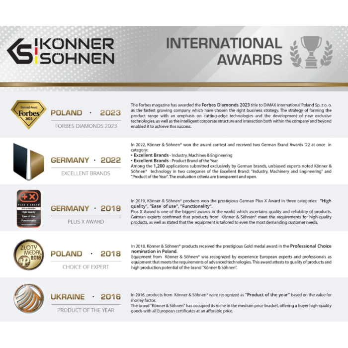 Reliability and durability: a high-quality alternator with 100% copper winding and a powerful K&S engine guarantee long-term and reliable operation of the generator, meeting all European quality standards.