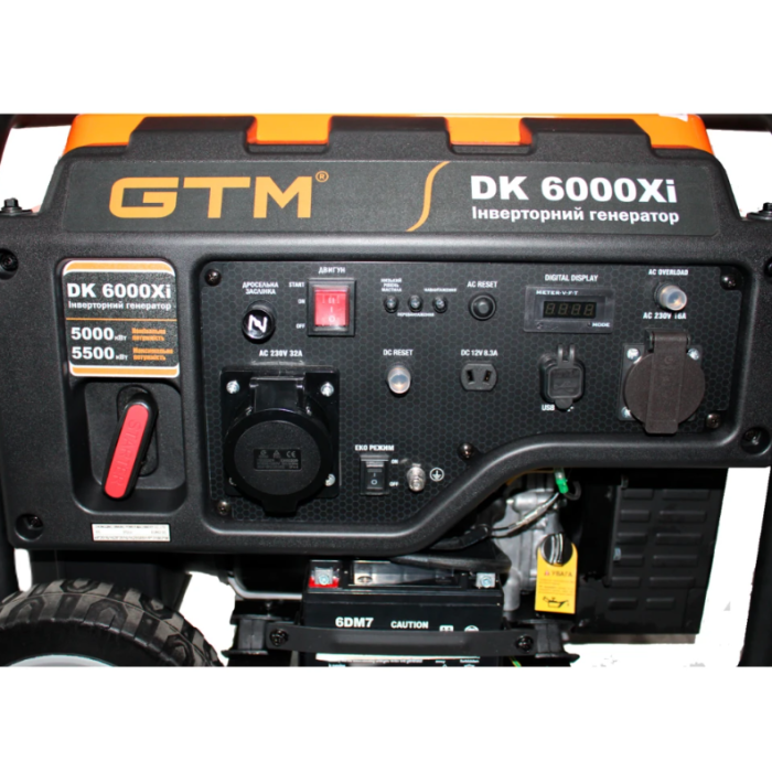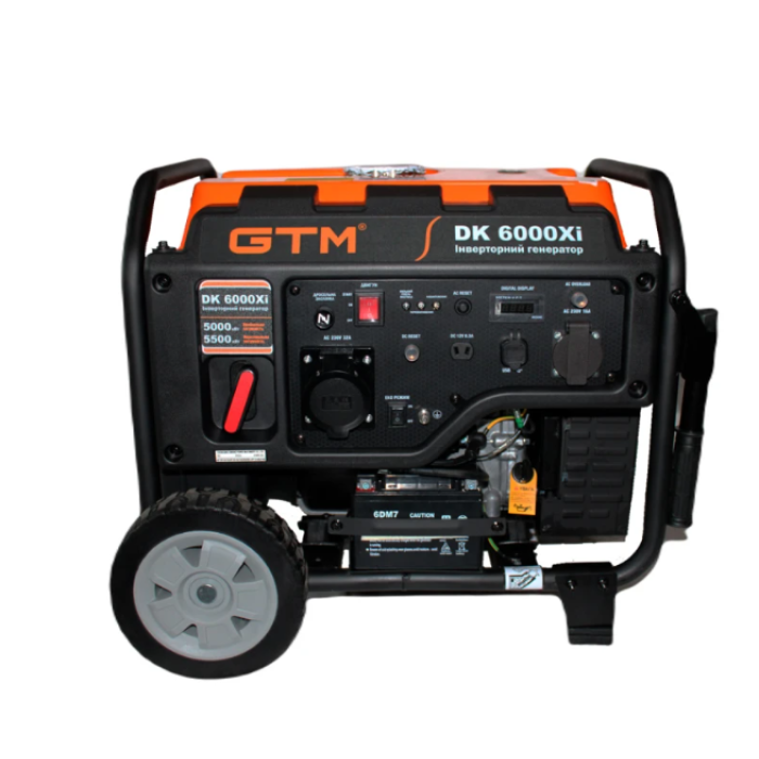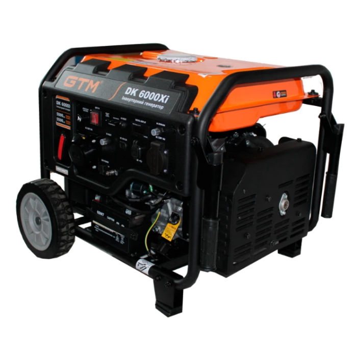 The GTM DK6000Xi inverter gasoline generator is equipped with a reliable, extreme-duty 4-stroke DK180F engine with a maximum output power of up to 5.5 kW. An ideal option to make your vacation, hike or fishing even brighter and more comfortable. During operation, a full fuel tank with a volume of 16 liters will last up to 9 hours at 50% load. Inverter technology provides reliable power for sensitive electrical devices and computers. Low lubrication protection. Convenient protected panel.The thermal automatic switch protects the generator from overload or overheating. Alarm indicator greatly simplifies control during use