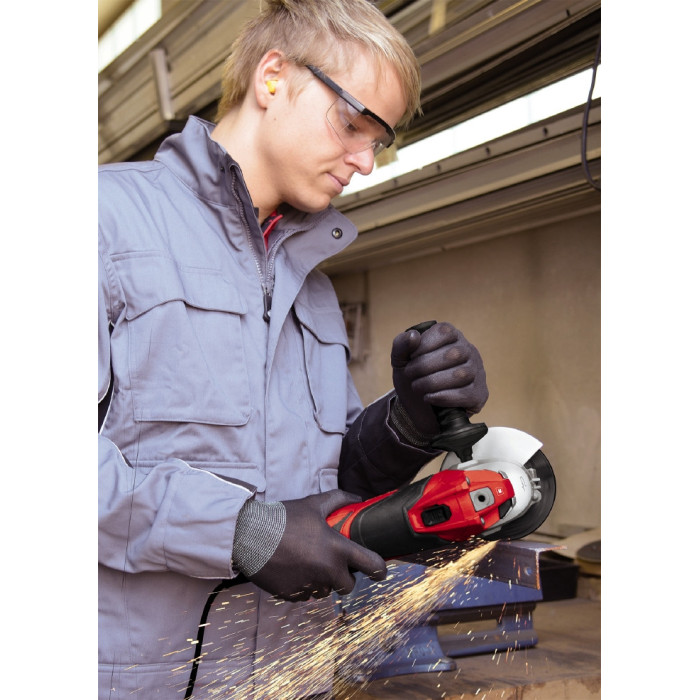 Захисний кожух швидко регулюється Блокування шпинделя для легкої зміни диска Низький рівень вібрації Плоский алюмінієвий корпус редуктора Додаткова рукоятка і основна рукоятка з м'якими накладками Додаткова рукоятка може бути встановлена в 3-х положеннях Гайковий ключ може зберігатися в додатковій ручці Кабельний затискач для кріплення кабелю Ріжучий диск не входить в комплект поставки Кутова шліфмашина TE-AG 125/750 є інструментом високої якості для фахівців з високими вимогами, чиї сильні сторони продемонстрували повною мірою на широкому спектрі різання, шліфування на робочому місці в будинку, майстерні та гаражі. Захисний кожух швидко регулюється без інструментів та може бути адаптований тільки поворотом руки до будь-якого завдання, в той час як блокування шпинделя дозволяє легко і швидко змінити диск. TE-AG 125/750 має міцний та плоский металевий корпус редуктора, який забезпечує відмінну передачу потужності і роботу з низьким рівнем вібрації. Завдяки тонкому корпусу і м'яким накладкам на основній та додатковій ручках, кутова шліфмашина пропонує дуже високий рівень зручності для користувачів. Крім того, додаткова рукоятка може бути закріплена в трьох різних положеннях для оптимальної адаптації до конкретної оброблюваної деталі, що забезпечує надійне утримання для комфортної та безпечної роботи. Гайковий ключ зберігається в додатковій ручці таким чином, щоб він завжди перебував в межах досяжності. Кабельний затискач для кріплення кабелю дозволяє зберігати TE-AG 125/750 акуратно і безпечно. Кутова шліфувальна машина поставляється без ріжучого диска.
