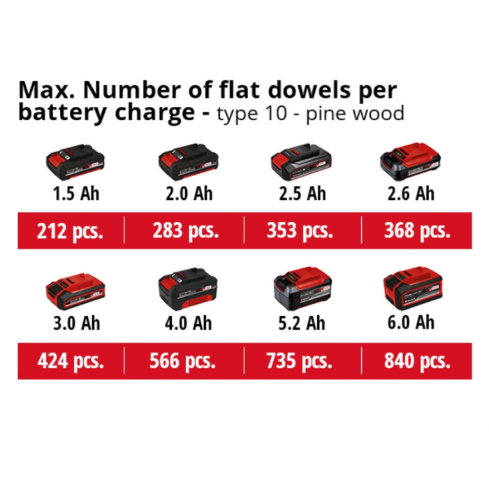 Інструмент серії Power X-Change Бездротове різання – гнучке, незалежне та готове до використання Безступінчасте налаштування кута до 90° Плавне регулювання висоти 6-ступеневе швидке регулювання глибини різу Підходить для стандартних розмірів дюбелів до типу 20 Міцна алюмінієва конструкція забезпечує точне різання пазів Блокування шпинделя для легкої зміни фрези Торцевий ключ для зміни фрези У комплекті з мішком для пилу для роботи без пилу Також сумісний з пилососами Einhell для вологого та сухого прибирання Поставляється БЕЗ акумулятора і зарядного пристрою Акумуляторний ламельний фрезер Einhell TE-BJ 18 Li — це бездротовий, точний помічник для виготовлення стикових з'єднань. Фрезер є пристроєм сімейства Einhell Power X-Change. Акумулятор і зарядний пристрій Power X-Change можуть використовуватися для всіх пристроїв сімейства Power X-Change. Міцна алюмінієва конструкція забезпечує точне різання пазів. Ламельний фрезер Einhell підходить для всіх стандартних розмірів дюбелів до типу 20. Безступінчаті параметри вирівнювання для налаштування висоти та налаштування кута до 90° є перевагами цього гнучкого помічника. Фрезер має 6-ступінчасте швидке регулювання глибини різання. Блокування шпинделя дозволяє швидко і легко змінювати фрези. У комплект поставки входить торцевий ключ для заміни фрез і мішок для пилу для чистої робочої зони. Завдяки адаптеру пилевідведення цей бездротовий пристрій для також сумісний із пилососами для вологого та сухого прибирання Einhell. Поставляється без акумулятора і зарядного пристрою, вони доступні окремо.