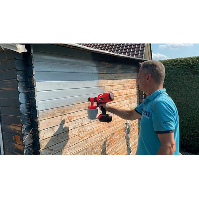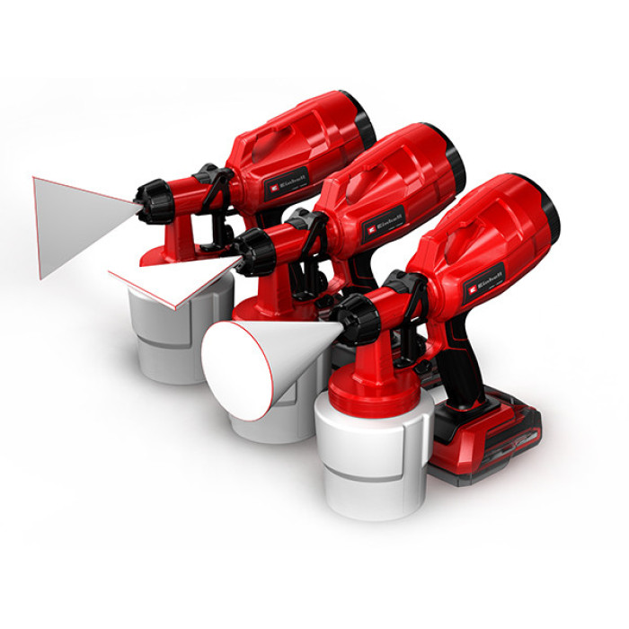 Інструмент серії Power X-Change Ручна система розпилення для невеликих і середніх приміщень Призначений для розпилення лаків і глазур З'ємна розпилювальна головка Регулювання інтенсивності подачі фарби Регулювання сопла для вертикального, горизонтального чи круглого струменя Комфортна робота завдяки м'яким накладкам Softgrip Практична ручка для підвішування Два сопла для різної вязкості лаку і глазурі Щітка для прочищення сопла Голка для прочищення сопла Резервуар 100 мл для визначення вязкості Кришка для бачка Бачок об'ємом 800 мл з мірною шкалою Поставляється без акумулятора і зарядного пристрою, вони доступні окремо. Акумуляторний фарборозпилювач Einhell TC-SY 18/60 Li - Solo являє собою ручну систему розпилення фарби для малих і середніх приміщень, пристосовану для лаків і глазурі. Фарборозпилювач є пристроєм сімейства Einhell Power X-Change. Акумулятор і зарядний пристрій Power X-Change можуть використовуватися для всіх пристроїв сімейства Power X-Change. Регульоване сопло для вертикального, горизонтального та круглого струменів дозволяє адаптувати фарборозпилювач до різних завдань. Змінна розпилювальна головка дає можливість легко очищати всі елементи, котрі вступають в контакт з фарбою. Практична ручка для підвішування дозволяє економити місце при зберіганні. У комплект поставки входять: два сопла для різної вязкості лаку і глазурі, резервуар для проби вязкості, щітка і голка для чищення, а також бачок для фарби об'ємом 800 мл з кришкою. Поставляється без акумулятора і зарядного пристрою, вони доступні окремо.