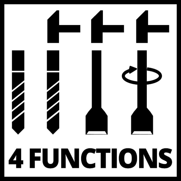 4 функції: свердління/свердління з ударом/довбання з фіксацією та без неї Муфта перевантаження для підвищення безпеки користувача Один позиційний перемикач для всіх функцій Великі поверхні з м'якою накладкою для комфортної роботи Блокування безперервного ходу для комфортної та легкої роботи. Пневматичний ударний механізм для відмінного приведення в рух Міцний тримач інструменту SDS-plus з напівавтоматичним режимом роботи Швидкісна електроніка для роботи відповідно до матеріалу та застосування Пластиковий обмежувач глибини свердла з плавним регулюванням Поставляється в кейсі E-Box Basic для транспортування та зберігання Перфоратор Einhell TC-RH 800 4F — це помічник потужністю 800 Вт із чотирма основними функціями для ремонтних робіт: свердління, ударне свердління та довбання з фіксацією і без неї. Перфоратори використовують, коли потрібна груба сила. Вони бурять і свердлять тверді матеріали, такі як камінь і бетон. Ударні імпульси буквально «зношують» матеріал, тоді як ріжуча кромка в’їдається в матеріал завдяки обертальному руху та виламує його. Перфоратори також підходять для робіт з руйнування, а також для відривання або відколювання твердих матеріалів, таких як бетон, цегла або камінь. Перфоратор передає інструменту до 2,6 Джоуля та створює відмінну тягу за допомогою пневматичного ударного механізму для потужності свердління в бетоні до 26 мм. Позиційний перемикач зручний для всіх функцій, тоді як великі поверхні з м’якою рукояткою забезпечують міцне утримання та безпечне використання. Перфоратор оснащений фіксатором безперервного ходу для зручної та легкої роботи та міцним тримачем інструменту SDS-plus із напівавтоматичним керуванням. При всій потужності електроніка швидкості забезпечує гнучку роботу відповідно до матеріалу та застосування, а муфта перевантаження забезпечує безпеку. Плавно регульований обмежувач глибини свердління виготовлений із міцного пластику. Поставляється в кейсі E-Box Basic для транспортування та зберігання.