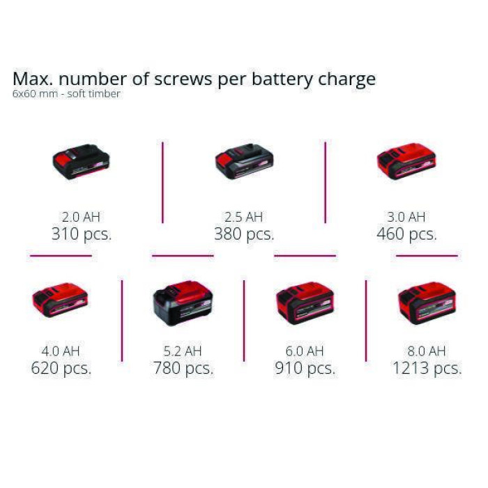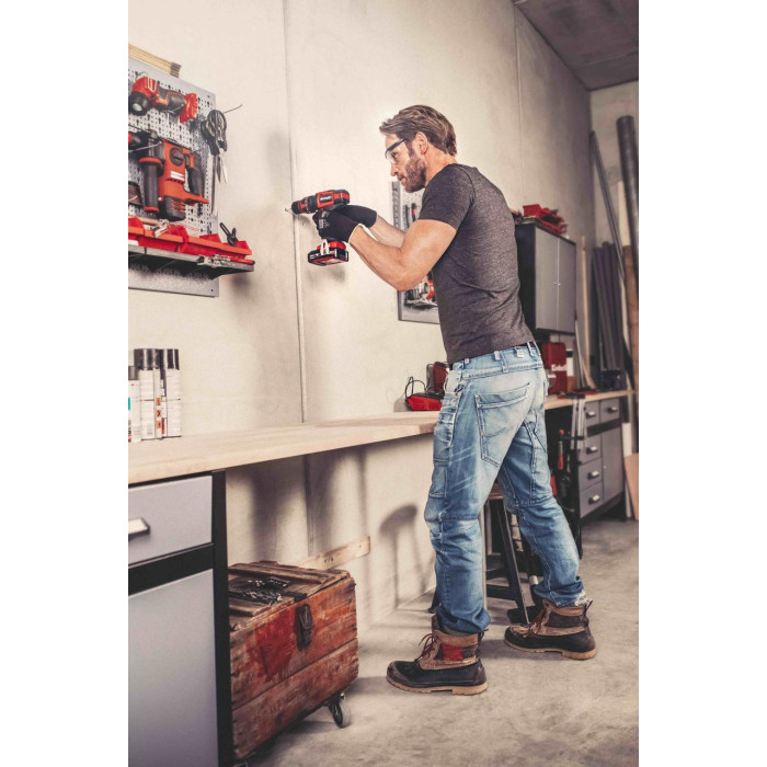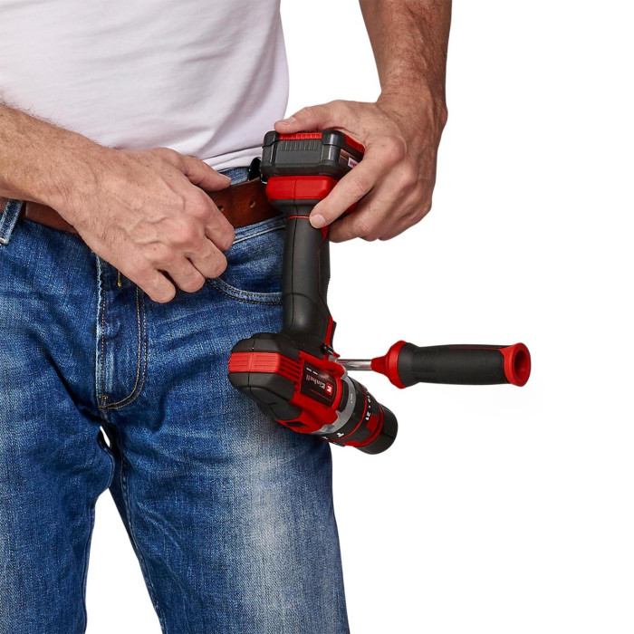 Акумуляторний шуруповерт Einhell TE-CD 18/48 Li-i - Solo – універсальний інструмент, який окрім функції загвинчування і свердління має функцію свердління з ударом. Шуруповерт є пристроєм сімейства Einhell Power X-Change. Акумулятор і зарядний пристрій Power X-Change можуть використовуватися для всіх пристроїв сімейства Power X-Change. Завдяки літій-іонній технології у акумулятора відсутній саморозряд, тому шуруповерт завжди готовий до роботи. Двошвидкісний редуктор максимально ефективно передає потужність двигуна для загвинчування, свердління і свердління з ударом з частотою до 24,000 ударів в хвилину. Яскравий світлодіод забезпечує оптимальне освітлення робочої зони. Електронне регулювання швидкості дозволяє адаптувати швидкість до вимог будь-якого матеріалу і гвинтів. Ергономічна форма ручки і м'які накладки Softgrip дозволяють надійно тримати інструмент в руці. Поставляється без акумулятора і зарядного пристрою, вони доступні окремо.