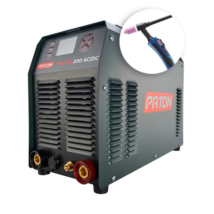 Argon inverter PATON PROTIG-200 AC/DC - enough multifunctional apparatus designed for TIG AC/DC welding, MMA manual arc welding , and availability of spot (cold) welding mode – SPOT. PROTIG-200 AC/DC Model - welding provides direct and alternating current to 200 amps wide range of materials: aluminum, aluminum alloys (TIG AC mode), the details and materials of steel, nonferrous metals and copper alloys (TIG DC mode). The inverter provides excellent ignition and sustained a stable arc, and as a result - a quality weld, and ease of set up and ease of operation.