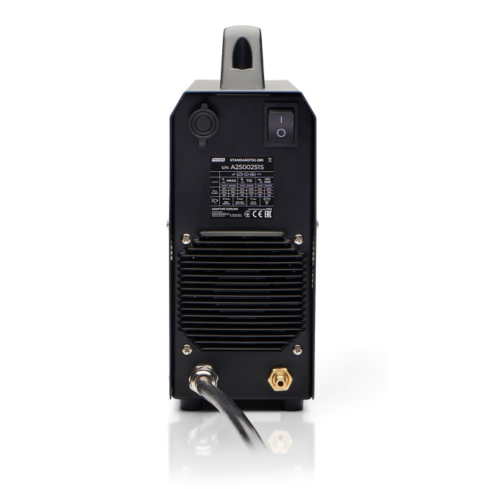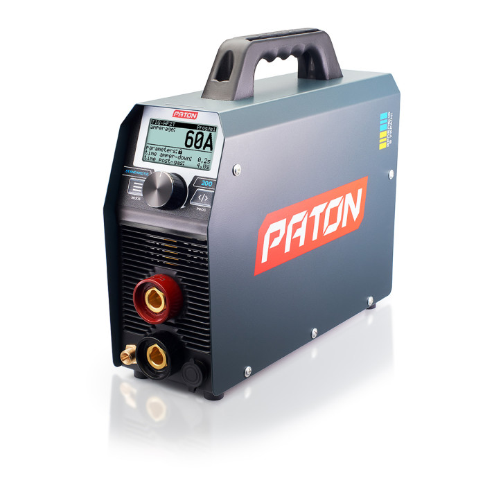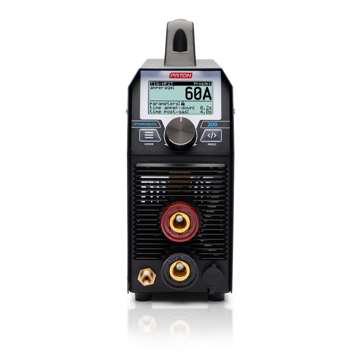 Digital TIG welding inverter PATON StandardTIG-200 - for TIG welding of stainless steel products, the compounds of alloyed steels and non-ferrous metals, a constant current of 200 amperes. Also, the apparatus operates in manual arc (MMA) and semi-automatic welding (MIG/MAG, as a current source in the composition with an external feeder). StandardTIG-200 model has maximum mobility, and sufficiently large functional. 200A nominal current, sufficient for any welding with coated electrodes with diameters from 1.6 mm to 5 mm, and semi-continuous welding wire of 0.6 to 1 mm. The apparatus unit integrated contactless arc ignition (oscillator) and as well as a PULSE function for each welding mode (MMA, MIG/MAG, TIG).