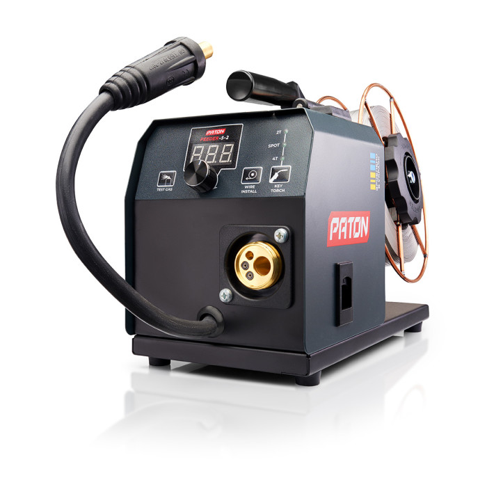 During the operation of the supply unit, its built-in digital control board receives signals independently with connector KZ-2. It starts the welding process with the characteristics according to the set parameters. The system provides control of the engine speed feeding. Feeder-5-2 is fully optimized to work with PATON production sources, as the main connectors and installation are already provided for in the device's design.