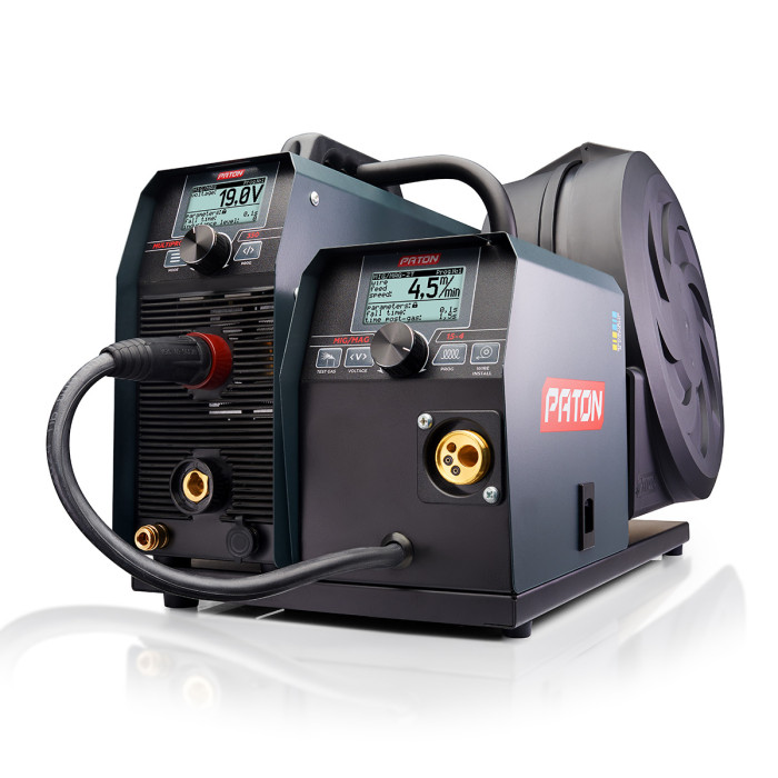 The inverter unit PATON MultiPRO-350-15-4-400V - is a versatile inverter with digital control method, designed for manual arc welding (MMA), TIG and semi-automatic welding (MIG/MAG) in shielding gases and mixtures thereof. MultiPRO-350-15-4-400V doublecase design allows to disconnect the source from the wire feeder, which greatly improves the mobility and convenience in MMA and TIG modes. 350A rated current is sufficient for any welding electrodes, diameters from 1.6 mm to 6 mm, and a continuous semi-automatic welding wire diameter of 0.6 to 1.4 mm. The device is equipped with a contactless ignition unit (oscillator) in TIG mode and powerful chetyrehrolikovym metal wire feeder canned motor. Universal connector KZ-2 type ""EURO"" provides an opportunity to connect the burner from a wide range of manufacturers.