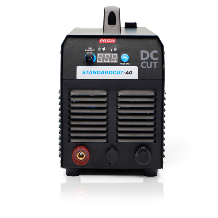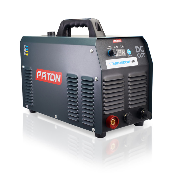 PATON StandardCUT-40 inverter plasma cutter is designed for cutting metals and alloys up to 12 mm thick with a plasma arc in an air stream. This device is suitable for use in private and professional workshops. It is powered by a standard 220V single-phase network and is equipped with a plasma torch and a welding cable with a “ground” terminal. The main features of the plasma cutter are its affordability, ease of setup and use, and small overall dimensions.
