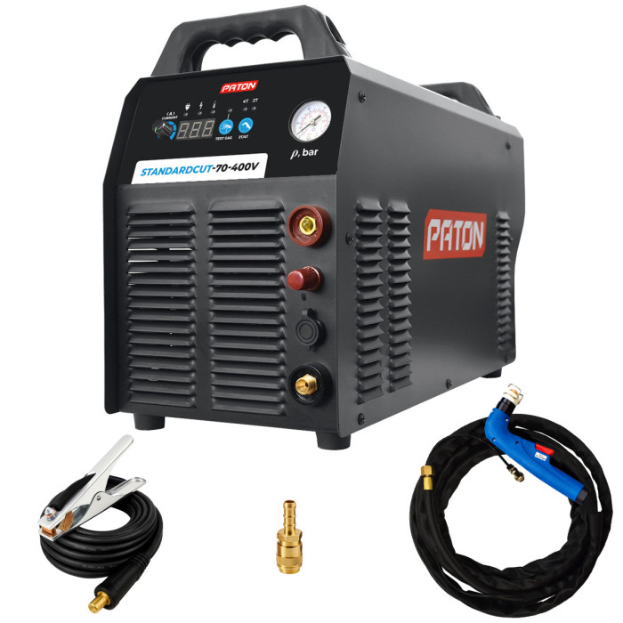 PATON StandardCUT-70-400V is designed for cutting metals and alloys up to 25 mm thick with a plasma arc in the airflow. This "Standard" series unit, is a reasonable compromise between power, functionality, and small overall dimensions. Due to the high-frequency inverter, the unit has a smaller mass and dimensions as compared with the classical equipment.