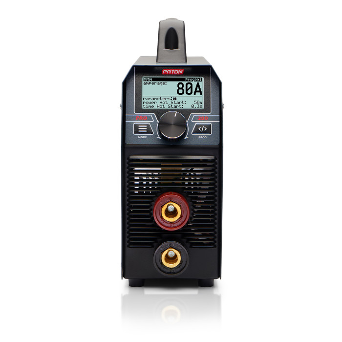 Digital welding inverter PATON PRO‐200 is designed for manual metal arc welding (MMA), tungsten arc inert gas welding (TIG) and semiautomatic metal inert/active gas welding (MIG/MAG) in the atmosphere of shielding gas or mixture (as a source with an external feeding machine) using direct current Advantageous completely digital control implemented in the design of the machine provides freedom from limitations typical for multi‐functional systems based on analogous control system, which are always inherently geared towards a specific mode, while other modes are additional and have drawbacks in terms of control. On the contrary, control board of a completely digital system offers all capabilities of the source within the range of its full power, regardless of the mode of use. This Professional series is designed for industrial use. Due to additional adjustments, the inverter rectifier can be set to optimum settings in various applications. They provide virtually uninterruptible load duration atfull fairrated current of 160 A, 200 A and 250 A respectively, which is sufficientfor work with any electrodes from Ф1.6 mm in diameter up, as well as for semiautomatic solid wire welding featuring wire from Ф0.6 mm. Initially, the source is set to settings, which are optimum for most applications, and is quite easy to use if you do not go into details of settings, which require good welder's skills.