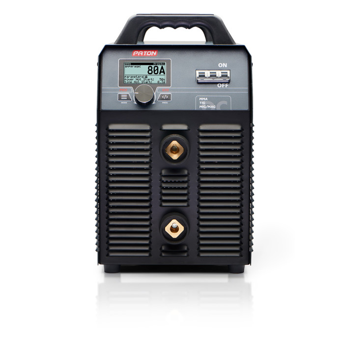 Digital welding inverter PATON PRO-630-400V - an industrial machine intended for manual arc welding (MMA), argon (TIG) and semi-automatic welding (MIG/MAG), a medium protective gases and mixtures thereof. Advantages of the apparatus PATON PRO-630 are in the fully digital control method. Thanks to the LCD display, the device is convenient to customize for any task. Series «Professional» welding machines aimed at the use in the industrial sector, with the possibility of additional adjustments. PRO-630 provides a substantially continuous load duration at the nominal current of up to 630A for any electrode diameter greater than 8 mm (including refractory), as well as for semi-continuous welding wire with diameters greater of up to 2 mm.