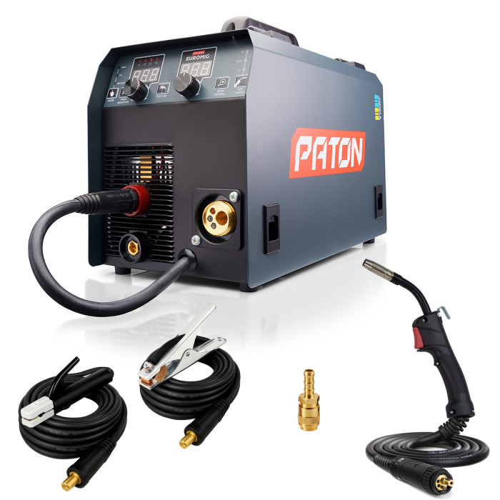 PATON EurodMIG is equipped with a 2 roller metal wire feeder, and a universal connector KZ-2 type "EURO" allows connecting welding torch from a wide range of manufacturers. EuroMIG, in conjunction with high power and capacity, has a low weight and dimensions. The device comes with high-quality accessories, which allow you to start work in MIG/MAG and MMA modes immediately.