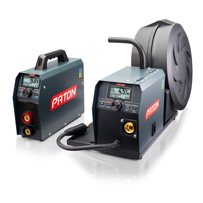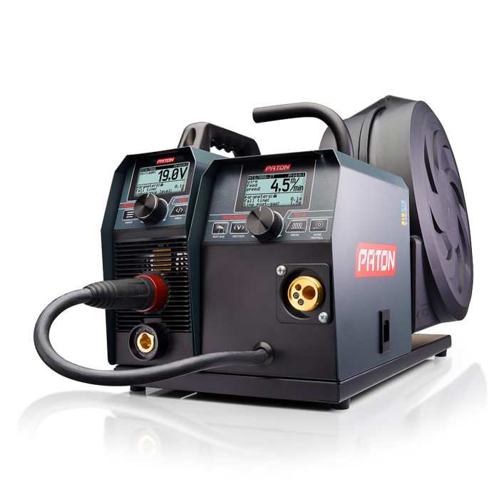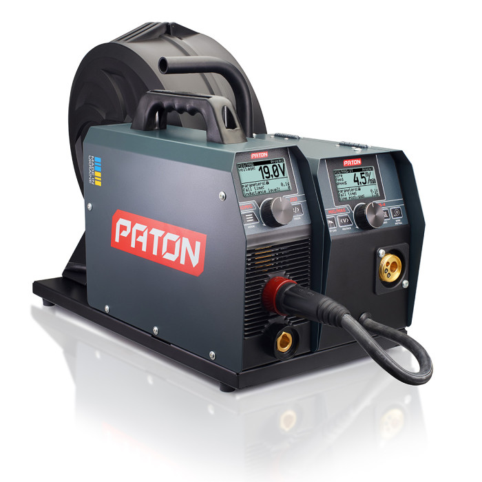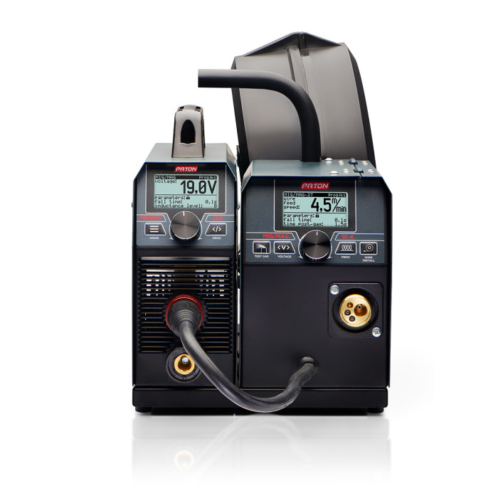 Digital semiautomatic inverter PATON ProMIG-250-15-4 -is a device for professional use, designed for semi-automatic welding (MIG/MAG), manual arc welding (MMA), TIG DC, in shielding gases and mixtures thereof. In ProMIG-250-15-4 machine has an all-digital way to manage, thereby ensuring its versatility and opportunities to fine tune the welding conditions. Expectancy increased load on the rated current to 250A, allows any electrode diameter from 1.6 mm to 6 mm (fusible), as well as semi-solid welding wire with a diameter of 0.6 to 1.2 mm. Due doublecase execution, a current source can be easily separated from the wire supply unit, which greatly improves the portability and usability in MMA and TIG modes.