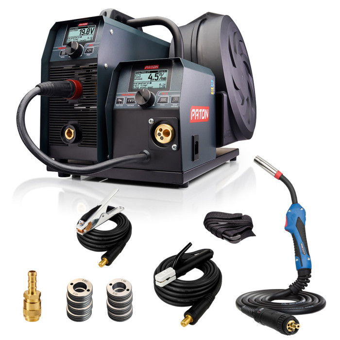 PATON ProMIG-270-15-2 equipped quality metal wire feeder with a strong hermetic motor, a universal connector KZ-2 type "EURO" allows connecting welding torch from a wide range of manufacturers. Powerful holder allows the welding wire coils weighing up to 15 kg. Model ProMIG-270-15-2 in conjunction with high power and capacity, has a low weight and dimensions. And thanks to the LCD screen machine is easy and convenient to set up a solution to any problem. The device comes with high-quality accessories from the company ABICOR BINZEL, which allow you to immediately start work in MIG / MAG and MMA modes.