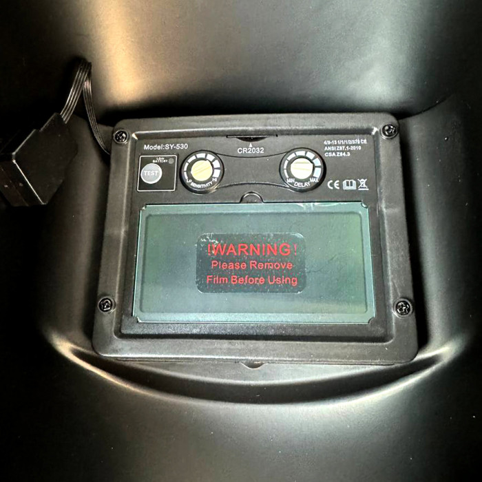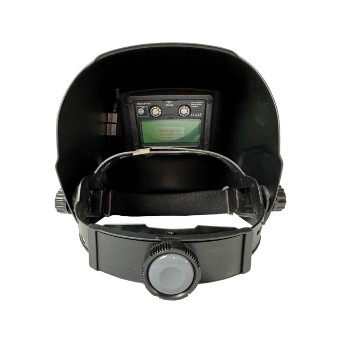 This is an automatic darkening "chameleon" helmet equipped with an auto-darkening filter. Both the sensitivity and the shade level of the filter can be adjusted using the internal control panel.