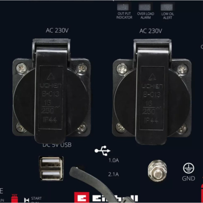 - Є захист від перевантаження, автоматичне відключення за низького рівня масла, датчик CO для контролю чадного газу.