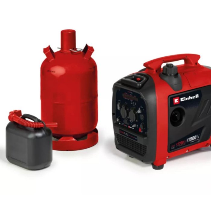 Einhell TE-IG 1900 DF працює від двох видів палива та видає 1800 Вт (1900 Вт) на бензині та 1600 Вт (1700 Вт) на газу. Чотирьохтактний мотор 3.2 л.с (2.3 кВт) з робочим об'ємом 79.8 см³ розвиває швидкість до 5300 об/хв. Бензобак має об'єм 4,2 л, його вистачає на 5,9 годин при навантаженні 2/3.