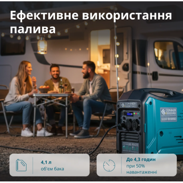 - Надійна пікова потужність 3.3 кВт для дому, кемпінгу та інструментів