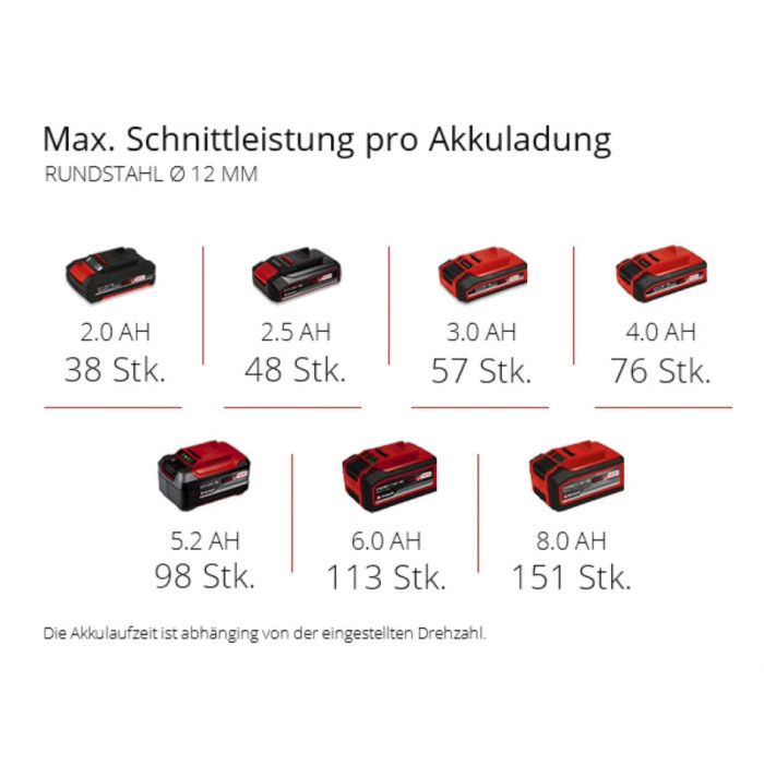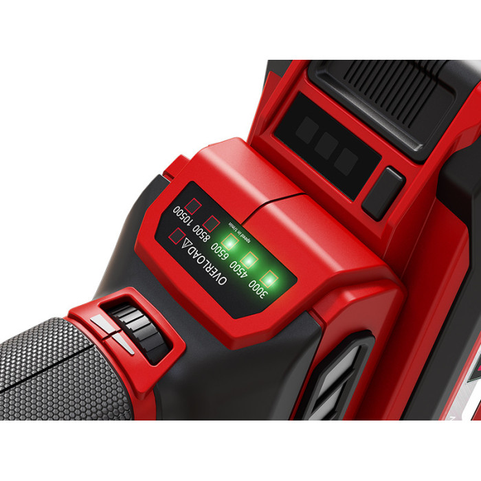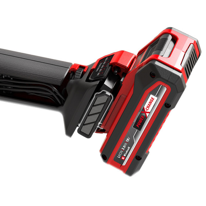 Інструмент серії Power X-Change Безщитковий двигун - більша потужність і велика робота Швидкозатискна фланцева гайка, без інструментів Функції плавного пуску і захист від перезапуску Регулювання швидкості обертання зі світлодіодним дисплеєм Електроніка забезпечує постійні оберти при навантаженні Вимкнення при перевантаженні Розділення двигуна і приводу Кожух диску Міцний алюмінієвий корпус редуктора Ергономічні м'які накладки на корпусі для комфортної роботи Додаткова рукоятка може бути встановлена в 2х позиціях Поставляється без диска Поставляється без акумулятора і зарядного пристрою, вони доступні окремо. Для оптимального різання, шліфування або чорної обробки використовуйте акумуляторну батарею ємністю не менше 2,5 Аг. Акумуляторна кутова шліфмашина Einhell TP-AG 18/125 CE Q Li - Solo - це практичний інструмент для гаража, дому чи майстерні. Шліфмашина є пристроєм сімейства Einhell Power X-Change. Акумулятор і зарядний пристрій Power X-Change може використовуватися для всіх пристроїв сімейства Power X-Change. Безщитковий двигун забезпечує більшу потужність і більш тривалий термін служби. Шліфмашина має електронне регулювання швидкості обертання від 3000 до 10500 обертів у хвилину та електронний контроль обертів під навантаженням, що дозволяє утримувати задані оберти під час роботи. Для забезпечення безпечної роботи шліфмашина має наступні функції: плавний запуск, захист від повторного та випадкового запуску. Диски легко замінювати без додаткових інструментів завдяки швидкозатискній гайці. Тонка конструкція корпусу, м'які накладки Softgrip, вибропоглинаюча рукоятка, а також з'єднання двигуна і редуктора через муфту забезпечують комфортну і зручну роботу з інструментом. Регулювання захисного кожуха зростає без додаткових інструментів. Корпус редуктора виготовлений з міцного сплаву алюмінію. Кутова шліфувальна машина поставляється без ріжучого диска. Поставляється без акумулятора і зарядного пристрою, вони доступні окремо. Для оптимального різання, шліфування або чорної обробки використовуйте акумуляторну батарею ємністю не менше 2,5 Ач.