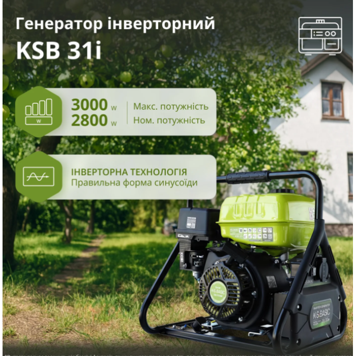 Инверторный генератор KSB 31i от немецкой марки Könner & Söhnen® – надежный источник автономного питания для дома, дачи, кемпинга или выездных работ. Напряжение – 230 В. Мощность: 3,0 кВт (макс) / 2,8 кВт (номинальное). Благодаря новой конструкции генератор стал доступным по цене – почти на уровне с обычным АВР-генератором, а инверторная технология обеспечивает стабильную и чистую синусоиду, что позволяет безопасно использовать его для чувствительной электроники и современной техники. Компактный и удобный для транспортировки. Оснащен надежным 4-тактным двигателем стандарта EURO 5 – экономичным, мощным и экологичным. Альтернатор с 100% медной обмоткой гарантирует стабильную работу.