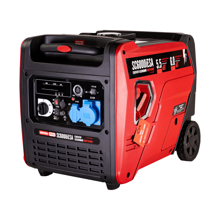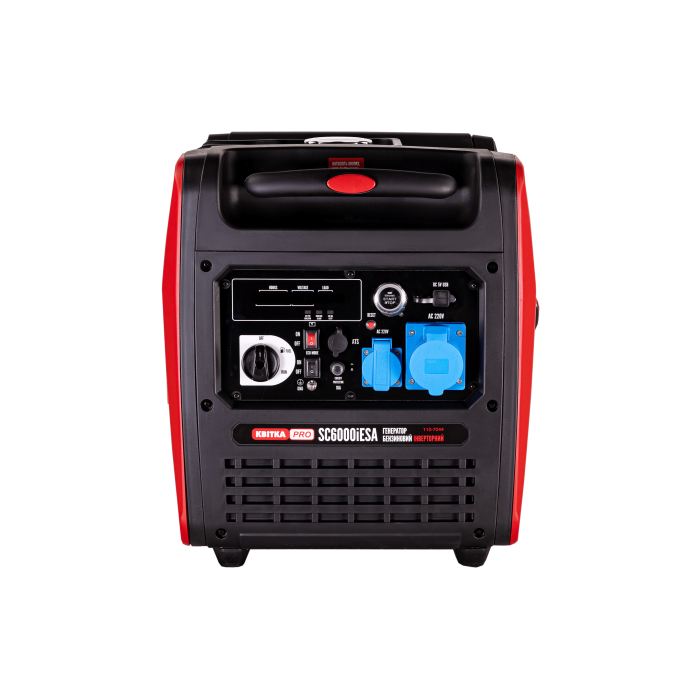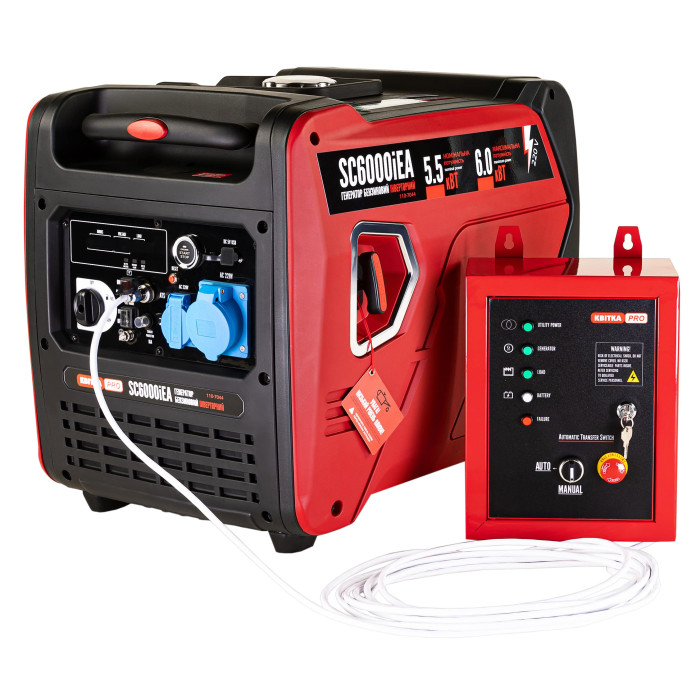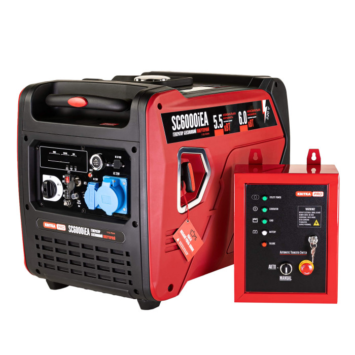 - Бензогенератор инвертор SC6000iESA имеет возможность подключения блока автоматического запуска (ATS), активирующего генератор, как только регистрируется перебой в поставке от основной сети. По умолчанию, инверторный генератор 6 кВт ЦВЕТ PRO, оборудован простым и удобным электростартером.