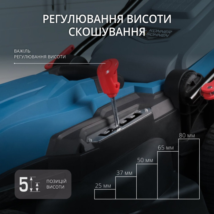 | Висота скошування | 25–80 мм, 5 позицій |