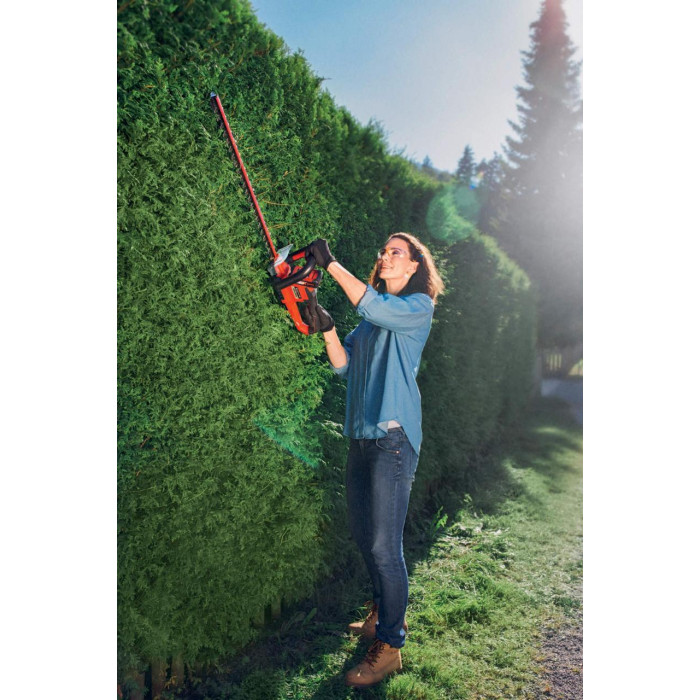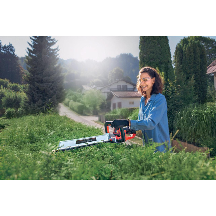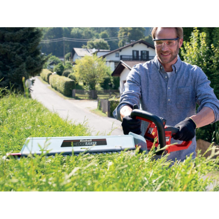 Аккумуляторный кусторез Einhell ARCURRA 18/55 является очень эффективным инструментом, который обеспечивает хорошую обрезку живых изгородей, кустарников и кустов на больших площадях в саду и парках, где нет подключения к электрической сети. Кусторез является устройством семейства Einhell Power X-Change. Батарея и зарядное устройство Power X-Change могут использоваться для всех устройств семейства Power X-Change. На эргономичной передней ручке с мягкими накладками Softgrip установлен микровыключатель. Металлический редуктор гарантирует длительный срок службы. Его двусторонние ножи долгое время останутся острыми благодаря лазерной заточке и алмазной шлифовке, длина реза составляет 55 сантиметров с частотой резов ножей 2700 в минуту. Накладка из алюминия защищает ножи, а крепкий защитный кожух обеспечивает безопасную транспортировку и хранение. Также на конце ножа предусмотрена накладка для защиты от ударов с отверстиями для крепления кузориза к стене. Аккумулятор и зарядное устройство не входят в комплект поставки, они доступны по отдельности.