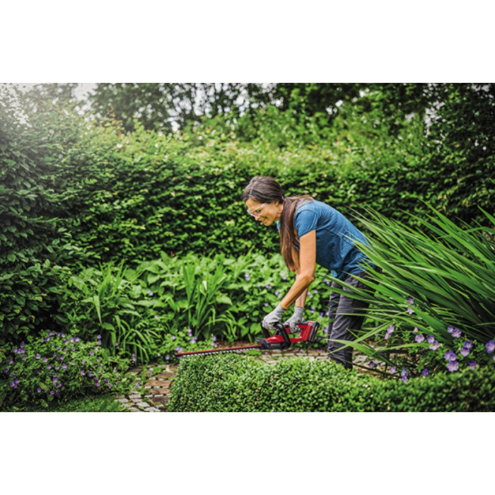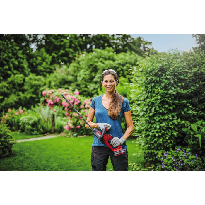 Аккумуляторный кусторез Einhell GC-CH 1840 Li - Solo является очень эффективным инструментом, обеспечивающим хорошую обрезку живых изгородей, кустарников и кустов на больших площадях в саду и парках, где нет подключения к электрической сети. Кусторез является устройством семейства Einhell Power X-Change. Батарея и зарядное устройство Power X-Change могут использоваться для всех устройств семейства Power X-Change. Металлический редуктор обеспечивает длительный срок службы, а его двусторонние ножи долгое время останутся острыми благодаря лазерной заточке и алмазной шлифовке. Двухручный аварийный выключатель останавливает лезвия менее чем за 1 секунду при отпускании выключателя. Лезвия защищены алюминиевой крышкой. Защита лезвия на конце шины с отверстием для крепления на стену позволяет хранить кусторез в минимальном пространстве, подвешив его на стену. GC-CH 1840 Li-Solo поставляется с прочным защитным пластиковым кожухом ножей для удобной транспортировки или хранения. Поставляется без аккумулятора и зарядного устройства, они доступны по отдельности.