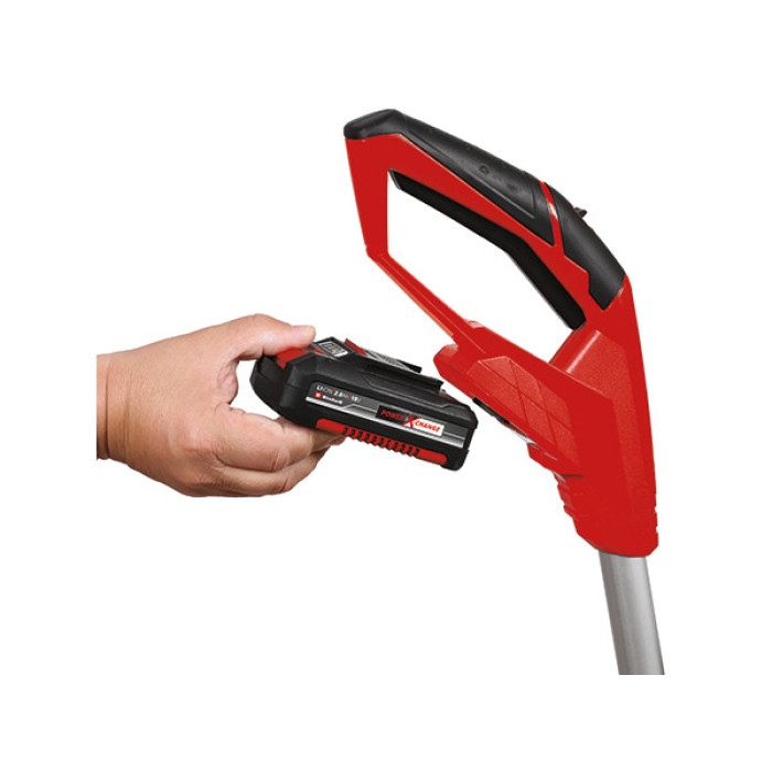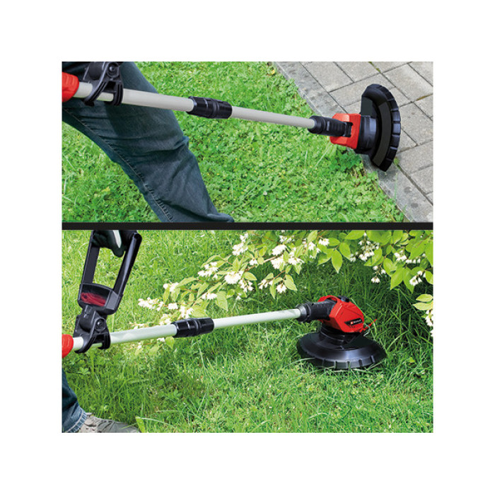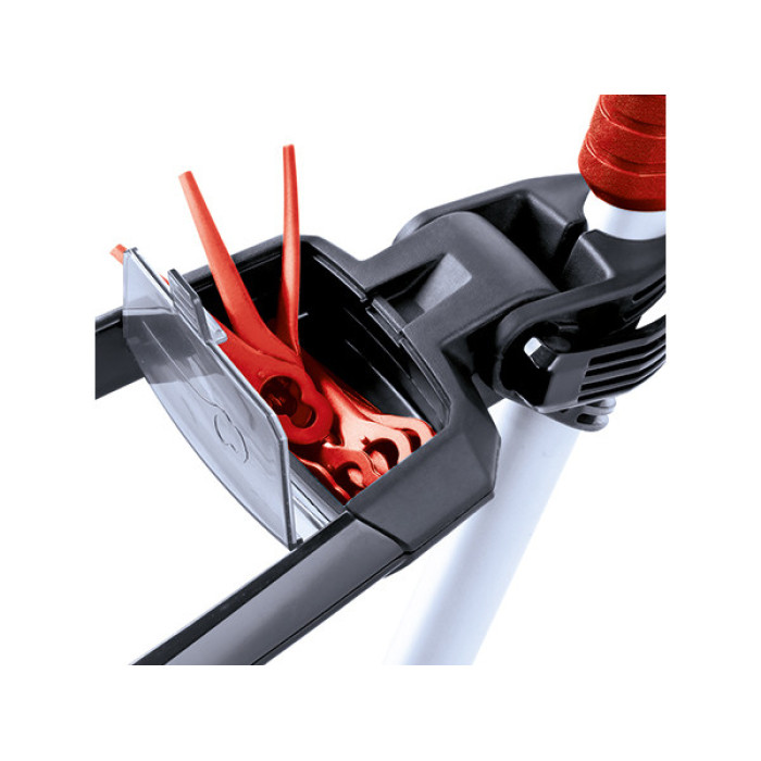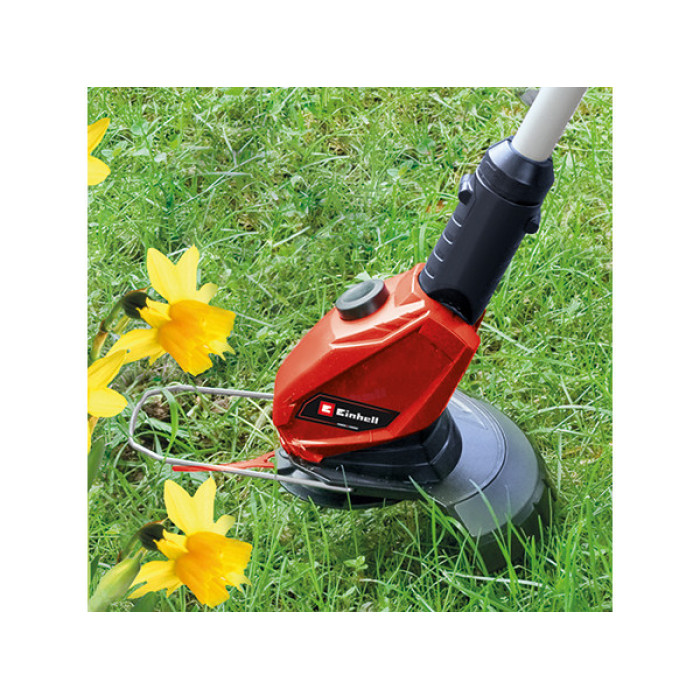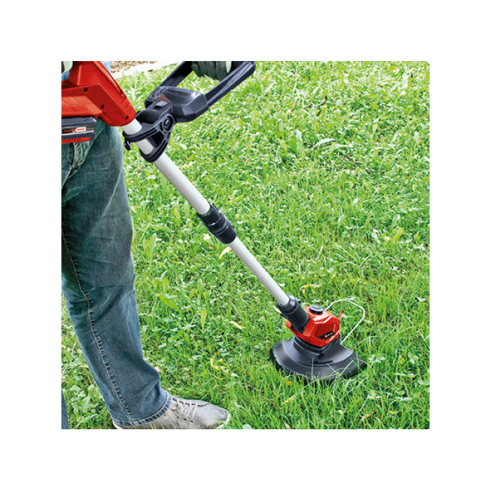 Інструмент серії Power X-Change Плавно регульована додаткова ручка Телескопічна довга ручка з плавним регулюванням Голова двигуна може повертатися на 90° для легкого різання уздовж вертикальних поверхонь і країв газону Нахил двигуна може регулюватися в 5 положеннях Обмежувач захисту квітів Flowerguard Вбудований лоток в додатковій рукоятці для 20 ножів Поставляється з 20 пластиковими ножами Рукоятка з м'якою накладкою Поставляється БЕЗ акумулятора і зарядного пристрою Акумуляторний тример Einhell GE-CT 18 Li - Solo є потужним інструментом, який допоможе зберегти Ваш газон в бездоганному вигляді в тих місцях, де немає підключення до електричної мережі. Тример є пристроєм сімейства Einhell Power X-Change. Батарея і зарядний пристрій Power X-Change можуть використовуватися для всіх пристроїв сімейства Power X-Change. Телескопічна довга ручка з плавним регулюванням тримеру GE-CT 18 Li - Solo може бути налаштована для зручної роботи користувачів різного росту. Навіть складні умови роботи, такі як вертикальні поверхні і кромки газонів, будуть легко і комфортно оброблені завдяки м’якій накладці на ручці, плавному регулюванню додаткової рукоятки з вбудованим відсіком для 20 ножів і головою двигуна, яку може повернути на +/- 90° і нахиляти пяти різних положеннях. Обмежувач захисту квітів Flowerguard захищає квіти, декоративні рослини та інші чутливі об’єкти від пошкоджень. Поставляється без акумулятора і зарядного пристрою, вони доступні окремо.